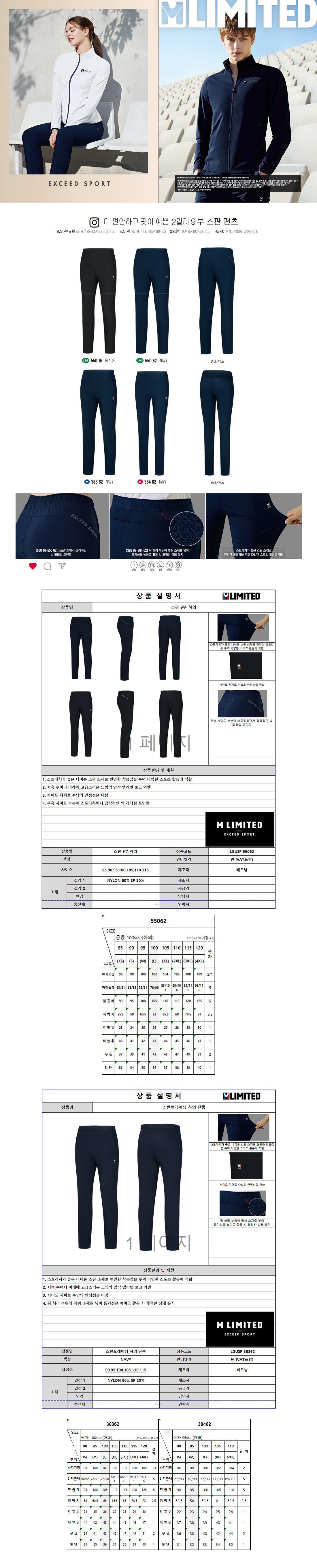 엠리밋 9부 스판 바지 / 55016,55062 / 블랙,네이비