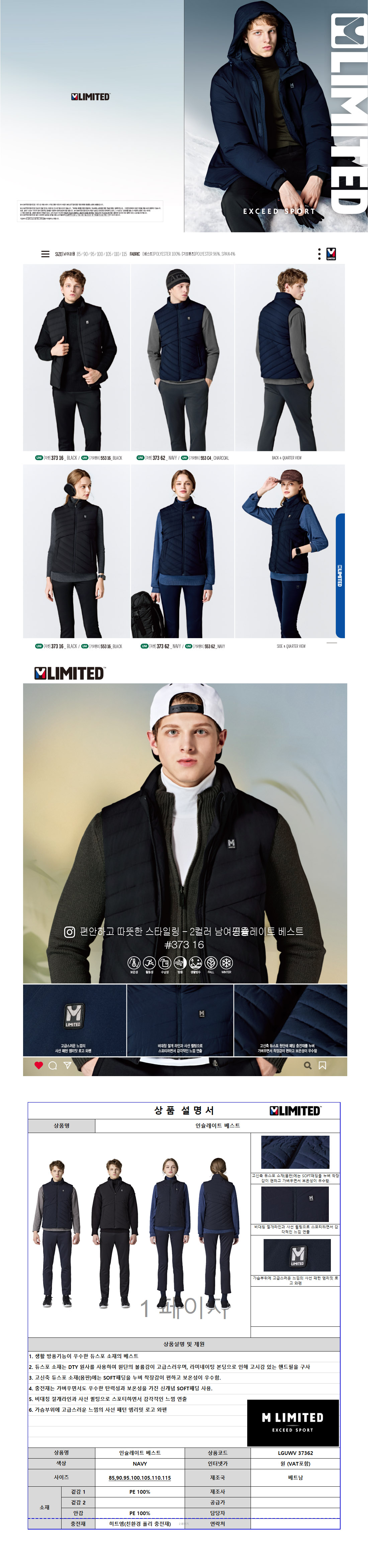 엠리밋 인슐레이트 패딩조끼 / 37362 / 네이비
