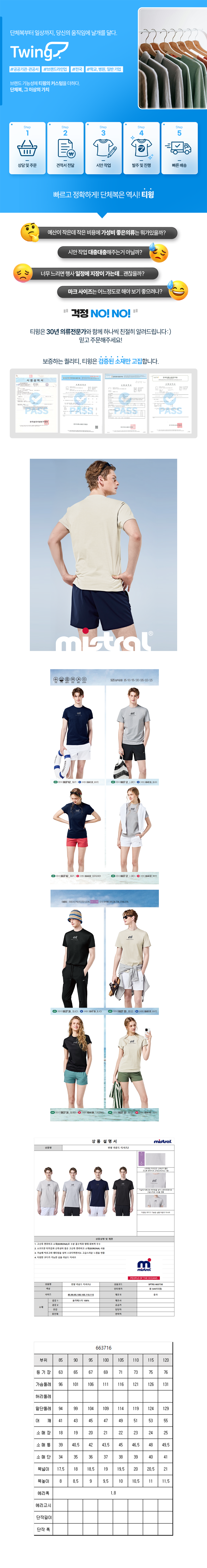 미스트랄 소로나 반팔라운드 티셔츠 / 663712 / 그레이